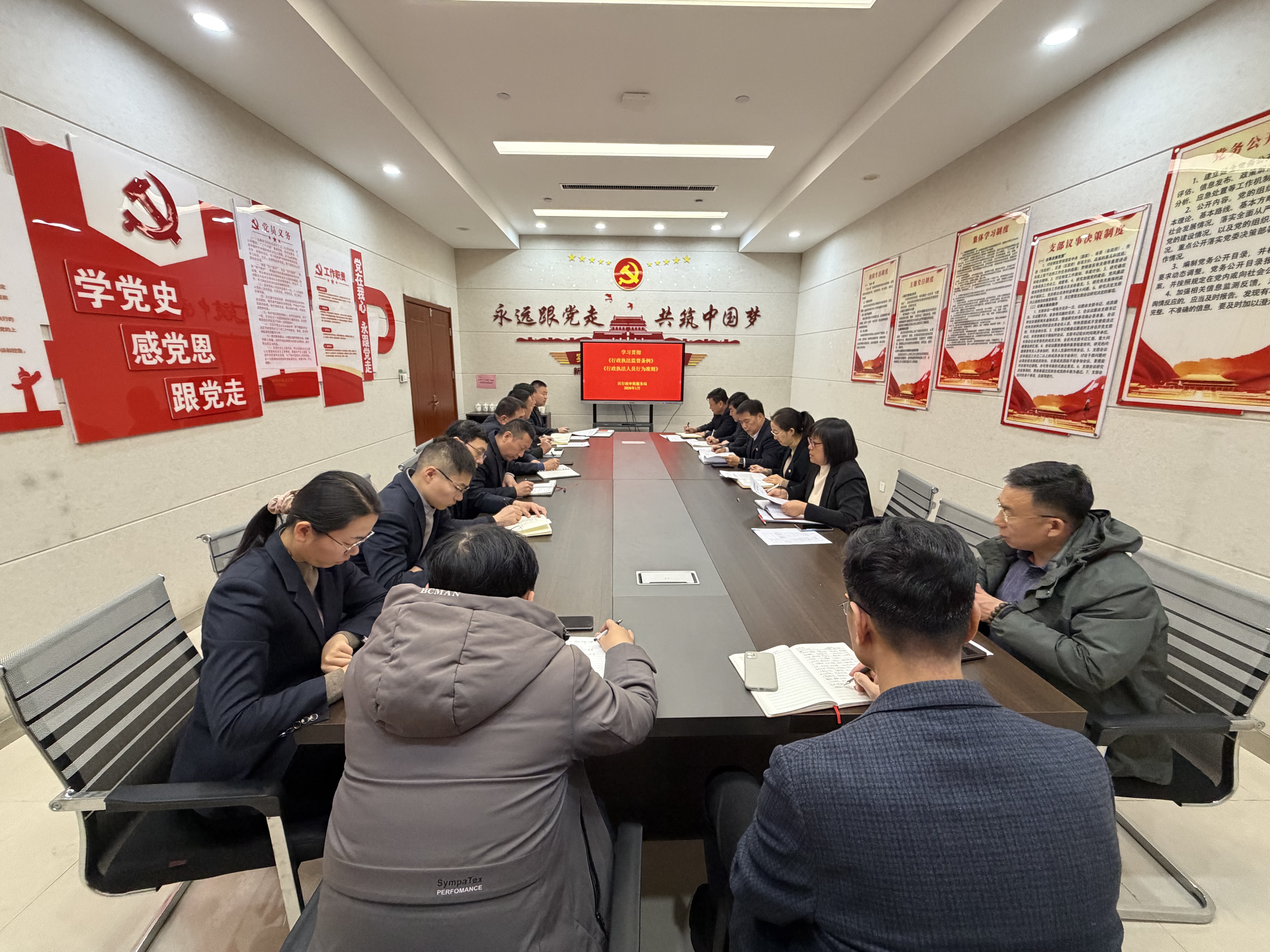 为进一步提高政治站位、强化思想认识,促进严格规范公正文明执法,提升依法行政水平,1月7日,区行政审批服务局局领导、科室负责人集体学习《行政执法监督条例》和《行政执法人员行为准则》。