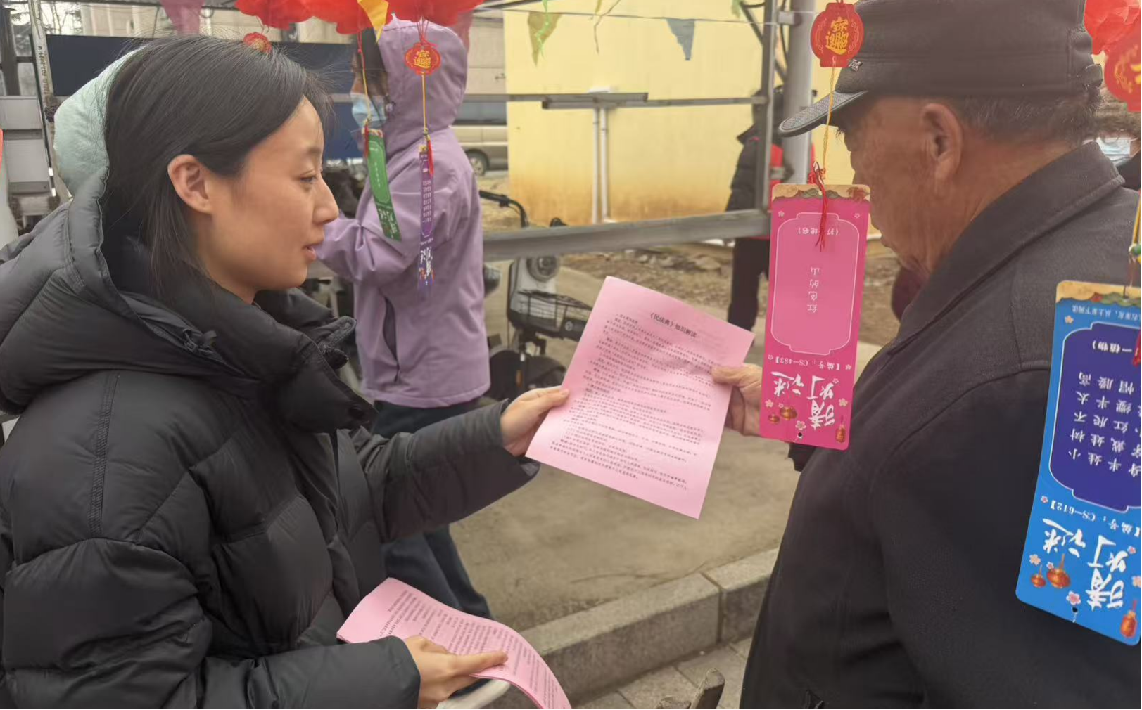 在第63个“学雷锋纪念日”与元宵佳节来临之际,为深入践行雷锋精神,弘扬法治文化,助力基层民主法治建设,3月2日,艾山司法所会同钢都公证处走进康源社区,开展主题普法宣传活动,将宪法、民法典及选举法等法律知识送到群众家门口,让法治春风伴随节日暖意浸润人心。