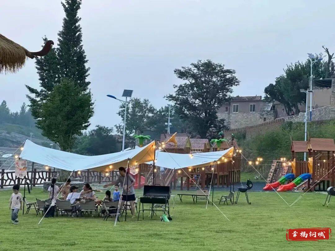 露营基地毗邻黑龙潭水库,面积达1万多平方米,配套接待大厅、无动力游乐中心等设施,兼顾休闲与亲子需求,成为热门打卡地。未央山居、杏园咖啡等设施同步配套,丰富了游客的露营体验。“我们是市中区的,跟孩子来这边踏青,野营吃烧烤,体验感拉满。”游客陈笑说。