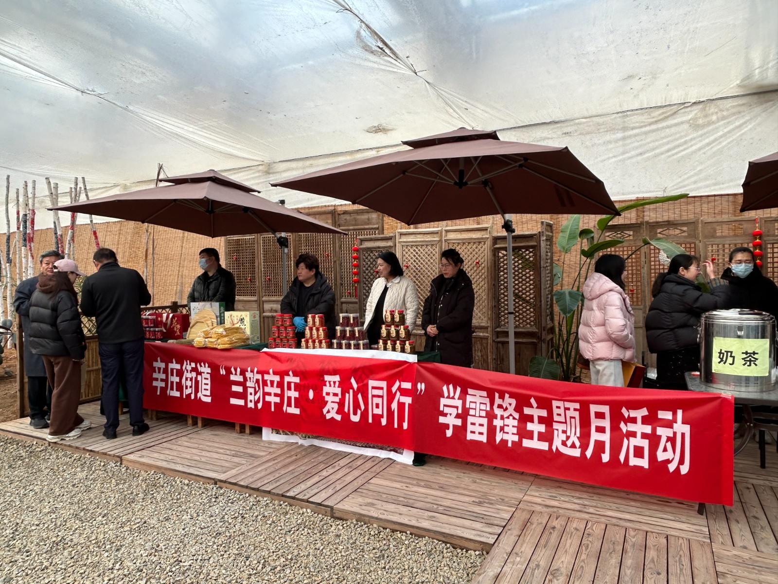 走进活动现场,专门设立的“爱心集市”助农服务专区人头攒动,成为本次学雷锋活动的一道亮丽风景。摊位上,草莓、玫瑰暖茶、响泉坊煎饼等辛庄本地特色农产品整齐摆放,还有村民自制的精美手工艺品琳琅满目。