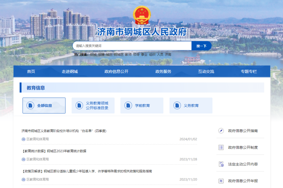 济南市钢城区教育和体育局2023年政府信息公开工作年度报告